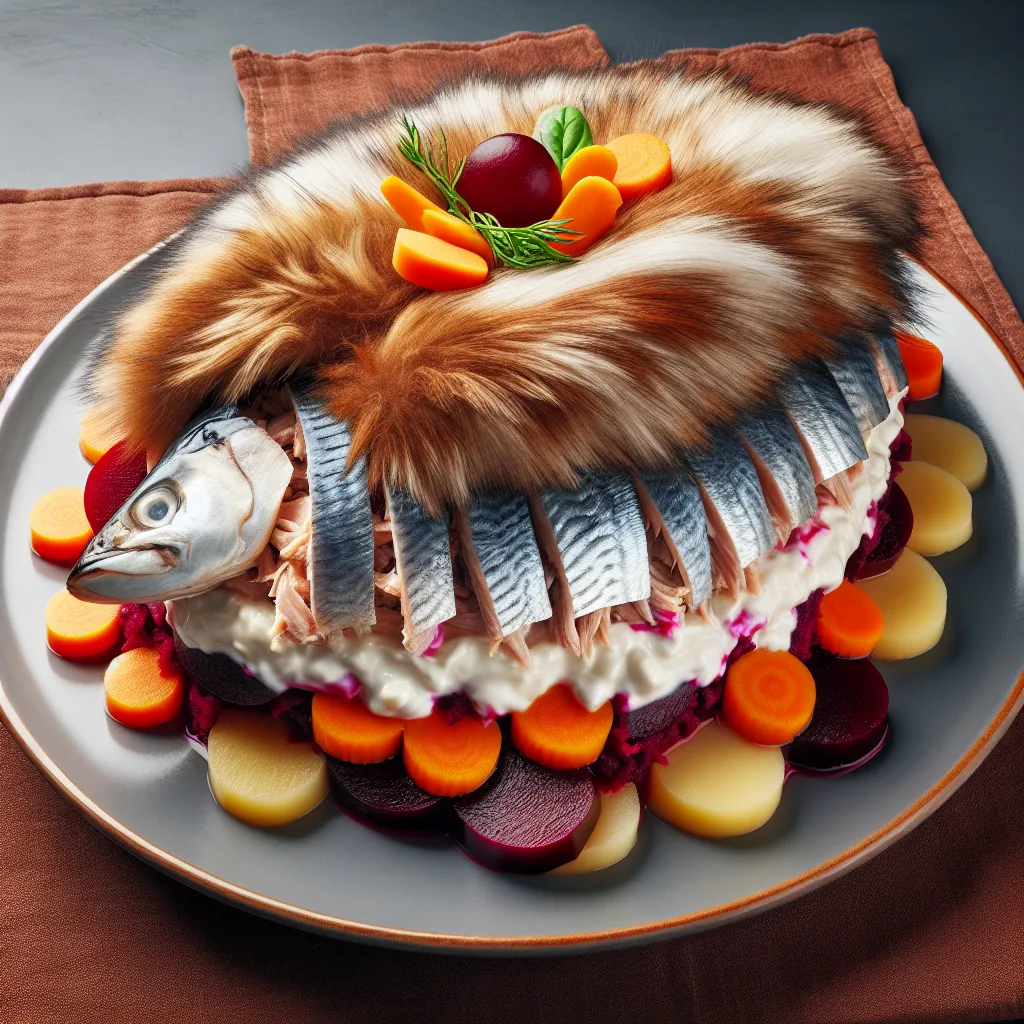 Селедка под шубой появилась в начале XX века и быстро завоевала популярность благодаря своей простоте и доступности ингредиентов. Классический рецепт включает в себя слои селедки, картофеля, моркови, свеклы и майонеза. Это блюдо символизирует единство и гармонию, что делает его особенно популярным на семейных праздниках.